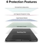 Folia de la Ringke vine cu un design unic, cu functie de curatare a prafului inainte de instalare.