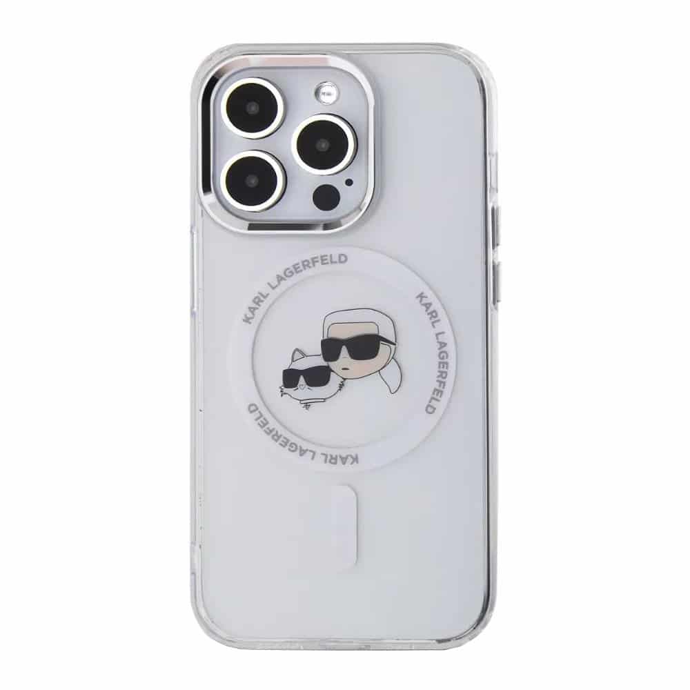 Husa Pentru Iphone 14 Pro – Karl Lagerfeld Iml Magsafe – Alb Metal Karl&Choupette Head
