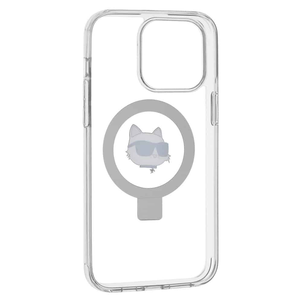 Iti doresti o husa cu suport pentru telefon? Noua carcasa Karl Lagerfeld dispune de un inel metalic ce poate fi folosit drept suport pentru device-ul tau.