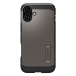 Husa Spigen Tough Armor pentru telefon, realizata din gel TPU si policarbonat negru, previne alunecarea accidentala fiind rezistenta la uzura.