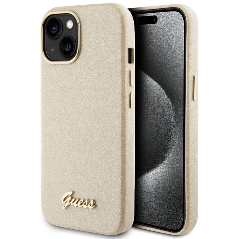 Husa Pentru Iphone 15 – Guess Glitter Glossy Script – Sparkle Bej